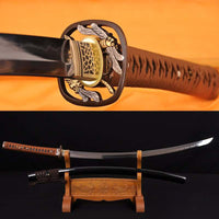 1.26" Deep Sori Blade Curve 1095 High Carbon Steel Clay Tempered Dragonfly Samurai Katana Sword Features: