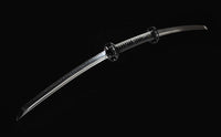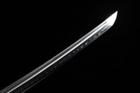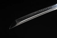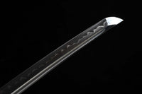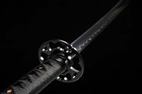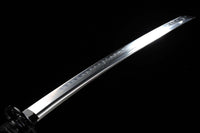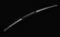 This Twinblade Wakizashi samurai sword is made out of a single piece of 1095 high carbon steel and then clay tempered and polished to produce a dramatic mirror-like surface. It is a very unique sword design exclusive to Swords of Northshire. There is no other weapon like it currently on the market.Featuring double wakizashi blades on both ends and a handle in the middle encasing the full tang, this weapon is deceptively simple. While we prefer to accentuate the double-bladed sword with a black lacquered scabbard and hilt, you can customize everything from your Ito to Sageo colors before purchase.Note: While the sword is fully functional, we do not recommend using this weapon for anything more than display. Because of the two cutting edges on either end, it's dangerous to practice or cut with, since it’s difficult to keep both cutting edges at a distance from you.