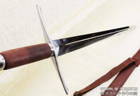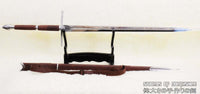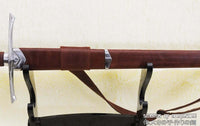 Are you tired of the cheap mold-made stainless steel replica swords? Are you looking for a real handmade fully functional sword? This William Wallace Braveheart sword is a very sharp and strong fully functional replica. The blade is made of 1095 high carbon steel, designed for heavy duty cutting. It can cut through bone, thick bamboo, copper, and iron wire without damaging the cutting edge. The surface is well-polished. The sheath and handle are both wrapped with high quality leather. It is a piece of graceful handmade art.