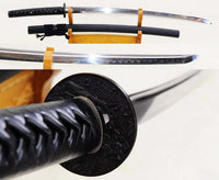 Clay Tempered 1095 High Carbon Steel All Black Samurai Katana Sword Features: