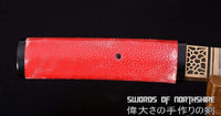 Clay Tempered T-10 High Speed Steel Rayskin Samurai Tanto Sword w/ Hazuya Polish Features: