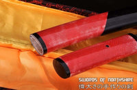 This high quality tanto is made of T-10 high speed steel, clay tempered with a polished mirror-like surface. The blade is completely polished with Hazuya which is a very thin Uchigumori stone. The Hazuya is used to bring out the beautiful cloudy hamon (temper line). It is a very strong blade made with traditional methods, for multiple applications. The blade is repeatedly heat treated and hand forged to remove impurities. The clay temper process combines the characters of toughness and flexibility and results in a genuine hamon (temper line) which is enhanced by the Hazuya stone. The blade is full tang and hand sharpened, suitable for battle. The sword comes with a rayskin wrapped black lacquer hardwood saya which matches the handle. This sword is a very good choice for dojo and iaido use, gifts, cutting practice, display, and collection. It is durable enough for tameshigiri, bamboo, bones, and iron wire.