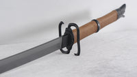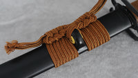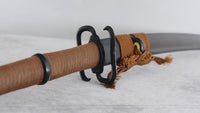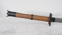 Our Black Unicorn katana is a truly unique design, it's fully forged as an accurate replica to the original sword from Cyberpunk 2077. The blade is forged from 1095 high carbon steel, sharpened with Niku for heavy cutting by default, and the blade is titanium coated for added durability. The saya is handcrafted from hardwood and includes silk sageo wrapping and kurikata with shitodome. The handle is wrapped in a katatemaki battle wrapping with brown leather ito, perfect for regular use. Featuring a set of custom designed coated brass fittings and a full-tang construction, this blade is a fantastic choice for regular practitioners, display, or even cosplay.