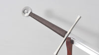 As one of the most basic, traditional weapons available in Elden Ring, the Longsword is instantly recognizable. Between the circular pommel, straight crossguard and classic Longsword fuller, careful detail has been given to recreate this sword as accurately as possible. Forged from 1095 high carbon steel, this is a strong, durable blade that will maintain a sharp cutting edge through regular use. The sword is paired with a leather scabbard and strap. This classic longsword is perfect for regular cutting, display, or even cosplay.