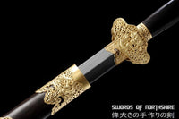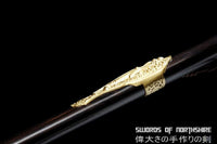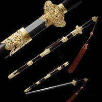 Gold Dragon Jian Hand Forged Folded Damascus Steel Blade Battle Ready Chinese Sword Features: