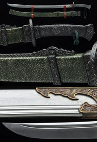 Green Dragon Chinese Sword Blade Full Rayskin Wrap Tai Chi Dao Features: