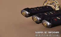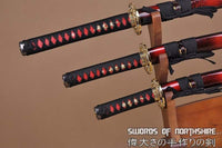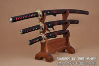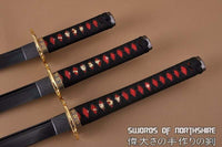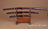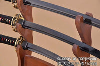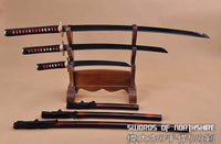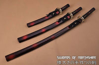 Hand Forged 1060 Steel Black Blade Katana, Wakizashi, and Tanto Samurai Daisho Sword Set Features: