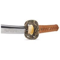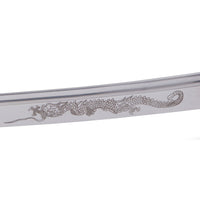 Out of all our dragon katana swords, this is an especially beautiful sword with a dragon engraving etched into the side of the katana blade. The saya, or sheath, also has a dragon carefully carved into the side of it. It is a stunning, but subtle design style for those looking for something elegant and minimal in a dragon samurai sword.