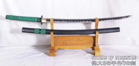 This Katana offers great quality at a reasonable price. Featuring our hand forged and polished 1060 carbon steel blade, designed for optimal balance and handling. This sword is a more traditional alternative to the many zinc aluminum alloy blades available. Our steel blades have been designed from the ground up, to offer perfect balance for regular Iaido & Kenjutsu use. The sword comes equipped with a black matte hardwood saya, silk sageo/ito, iron fittings, genuine same' (rayskin) and silk wrapped tsuka (handle). The Katana is well assembled and the ito wrapping is tight and even. Each sword is individually handmade so specifications may vary slightly.