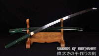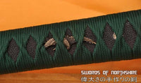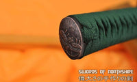 This Iaito Katana offers great quality at a reasonable price. Featuring our hand forged and polished 1060 carbon steel blade, designed for optimal balance and handling. This sword is a more traditional alternative to the many zinc aluminum alloy blades available. Our steel blades have been designed from the ground up, to offer perfect balance for regular Iaido & Kenjutsu use. The blade is unsharpened by default, and the customer can opt for free sharpening service. The sword comes equipped with a dark green lacquered hardwood saya, silk sageo/ito, solid alloy fittings, genuine same' (rayskin) and silk wrapped tsuka (handle). The Katana is well assembled and the ito wrapping is tight and even. Each sword is individually handmade so specifications may vary slightly.