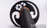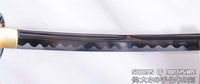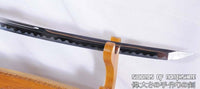 This sword is made of 1095 high carbon steel with a polished mirror-like surface. The blade is repeatedly heat treated and hand forged to remove impurities, which gives it strength and flexibility. The blade is full tang with hand engraved Mei (Signature). It is fully functional and battle ready. The sword comes with silk sageo/ito, genuine same' (rayskin), premium iron fittings, and a black lacquer hardwood saya. This sword is a very good choice for dojo and iaido use, gifts, cutting practice, display, and collection. It is durable enough for cutting tameshigiri, bamboo, bones, iron wire, etc.