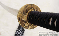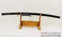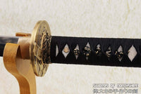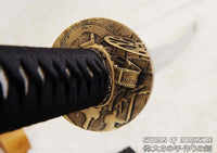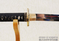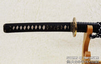 This sword is made of 1095 high carbon steel with a polished mirror-like surface. The blade is repeatedly heat treated and hand forged to remove impurities, which gives it strength and flexibility. The blade is full tang with hand engraved Mei (Signature). It is fully functional and battle ready. The sword comes with silk sageo/ito, genuine same' (rayskin), premium brass fittings, and a ribbed black matte hardwood saya. This sword is a very good choice for dojo and iaido use, gifts, cutting practice, display, and collection. It is durable enough for tameshigiri, bamboo, bones, iron wire, etc.