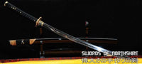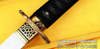 This sword is made of 1095 high carbon steel, clay tempered with a polished mirror-like surface. It is a very strong sword made with traditional methods, for multiple applications. The blade is repeatedly heat treated and hand forged to remove impurities. The clay temper process combines the characters of toughness and flexibility and results in a genuine hamon (temper line). The sword comes with silk sageo/ito, genuine same' (rayskin) and premium engraved copper fittings. The saya is made of hard wood and partially wrapped with genuine rayskin. This sword is a very good choice for dojo and iaido use, gifts, cutting practice, display, and collection. It is durable enough for tameshigiri, bamboo, bones, and iron wire.