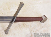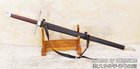 Are you tired of the cheap mold-made stainless steel replica swords? Are you looking for a real handmade fully functional sword? This western sword is a very sharp and strong fully functional replica. The blade is made of 1095 high carbon steel, designed for heavy duty cutting. It can cut through bone, thick bamboo, copper, and iron wire without damaging the cutting edge. The surface is well-polished. The shealth and handle are both wrapped with high quality leather. It is a piece of graceful handmade art.