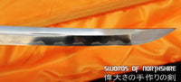 The blade is Unokubi-Zukuri style, with a back that gets thinner around the middle of the blade and regains its thickness just before the point. It's made of through hardened 1095 high carbon steel. The blade was repeatedly heat treated and hand forged to remove impurities, which gives it strength and flexibility. The blade is full tang with hand engraved Mei (Signature). It is fully functional and battle ready. The sword comes with a black lacquered hard wood saya, silk sageo/ito, premium engraved copper fittings, and genuine rayskin. It is suitable for dojo and iaito use, gifts, cutting practice, and display. It is durable enough for cutting tameshigiri, bamboo, bones, and iron wire.
