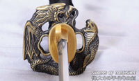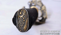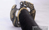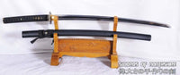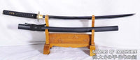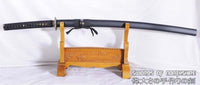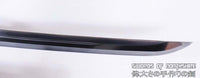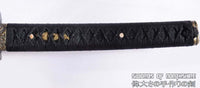 The blade is Unokubi-Zukuri style with a double edge made of through hardened 1095 high carbon steel. The blade was repeatedly heat treated and hand forged to remove impurities, which gives it strength and flexibility. The blade is full tang, functional, and battle ready. The sword comes with a black matte hardwood saya, silk sageo/ito, solid alloy fittings, and genuine rayskin. It is suitable for dojo and iaito use, gifts, cutting practice, and display. It is durable enough for cutting tameshigiri, bamboo, bones, and iron wire.