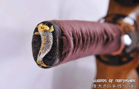 The blade is Unokubi-Zukuri style, with a back that gets thinner around the middle of the blade and regains its thickness just before the point. It's made of through hardened 1095 high carbon steel. The blade was repeatedly heat treated and hand forged to remove impurities, which gives it strength and flexibility. The blade is full tang with hand engraved Mei (Signature). It is fully functional and battle ready. The swords come with a black matte hard wood saya, silk sageo/ito, premium copper fittings, and genuine rayskin. It is suitable for dojo and iaito use, gifts, cutting practice, and display. It is durable enough for cutting tameshigiri, bamboo, bones, and iron wire.