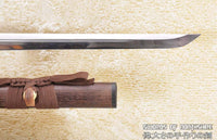 This ninjato sword is Unokubi-Zukuri style, with a straight 1095 high carbon steel blade. The blade was repeatedly heat treated and hand forged to remove impurities, which gives it strength and flexibility. The blade is full tang with hand engraved Mei (Signature). It is fully functional and battle ready. The sword comes with a natural huali wood saya, silk sageo/ito, premium brass fittings, and genuine rayskin. It is suitable for dojo and iaito use, gifts, cutting practice, and display. It is durable enough for cutting tameshigiri, bamboo, bones, and iron wire.