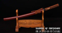 Hand Forged Black and Red Folded Damascus Steel Samurai Wakizashi Sword Features: