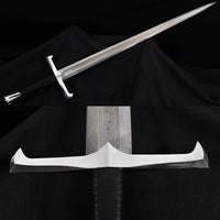 Hand Forged Folded Damascus 1095 Steel Medieval Feudal European Straight Blade Broadsword Features: