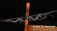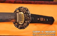 Hand Forged Folded Damascus Steel Clay Tempered Samurai Katana Dragon Sword Features: