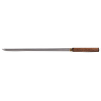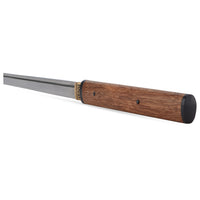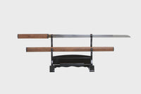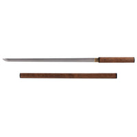 This is a well-made folded steel Shirasaya, following the traditional Japanese process. The blade is very sharp and folded 13 times resulting in 8,192 layers. The visible grain pattern on the blade comes from folding the blade repeatedly during forging. The blade is then heat-treated, tempered, and oil quenched to achieve optimal levels of flexibility and hardness. Finally, the blade is hand polished with multiple grades of sharpening stones which makes the surface of the blade reflective like a mirror. It comes with a natural huali wood saya with matching handle. The full tang is secured into the handle with two buffalo horn mekugi pegs. It is a very good choice for Dojo students, gifts, cutting practice, and display. The sword is strong enough to cut through bamboo yet sharp enough to slice paper. Each sword is individually handmade so specifications vary slightly from sword to sword.