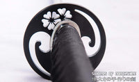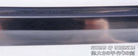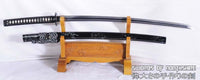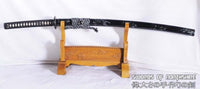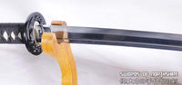 This is a well-made folded steel Katana, following the traditional Japanese process. The blade is very sharp and folded 13 times resulting in over 8,000 layers. It comes with a black lacquered and painted hardwood saya, silk sageo/ito, iron fittings, and genuine same (rayskin). The tang is secured into the handle with two bamboo mekugi and features a hand engraved Mei(signature). It is a very good choice for Dojo students, gifts, cutting practice, and display. It is durable enough for cutting tameshigiri and bamboo. Each sword is individually handmade so specifications vary slightly from sword to sword.