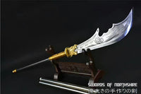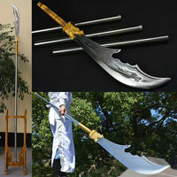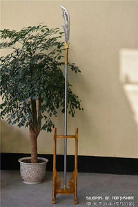The Green Dragon Crescent Blade was a legendary weapon wielded by Guan Yu, a great commander during the Three Kingdoms period (220-280 AD). His preferred weapon was a type of traditional Chinese polearm called a guan dao. With such a long handle, this weapon gave the fighter a much longer reach than more traditional katana or wakizashi.