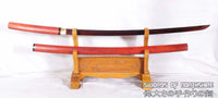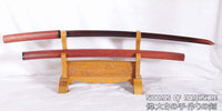 Hand Forged Red and Black Folded Steel Blade Samurai Katana Shirasaya Sword Features: