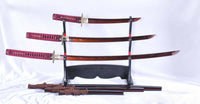 Hand Forged Red and Black Folded Steel Katana Wakizashi & Tanto Samurai Sword Set Features: