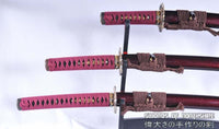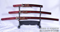Hand Forged Red and Black Folded Steel Katana Wakizashi & Tanto Samurai Sword Set Features: