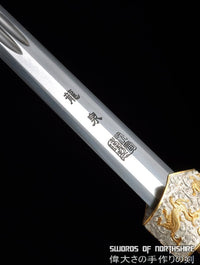 King of Yue Goujian Sword Hand Forged Folded Steel Gold & Silver Plated Chinese Tai Chi Jian Features: