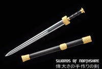 King of Yue Goujian Sword Hand Forged Folded Steel Gold Plated Chinese Tai Chi Jian Features: