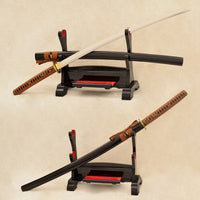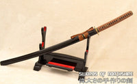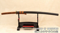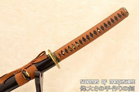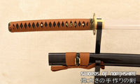 This Katana is made of 9260 Spring Steel which can withstand a high degree of bending and still spring back true. The blade has great durability and also better resistance to abrasion and corrosion than other high carbon steel blades. The blade is full tang and hand sharpened, suitable for battle. The sword comes with silk ito and sageo, genuine rayskin, alloy fittings, painted hardwood saya, and brass habaki and seppa. This sword is a very good choice for dojo and iaido use, gifts, cutting practice, display, and collection. It is durable enough for cutting tatami mats and bamboo. Each sword is fully handmade from the ground up, no two blades will be exactly alike.
