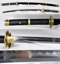 One Piece Yubashiri Roronoa Zoro Clay Tempered & Folded Steel Gyaku-Kobuse Katana Sword Features: