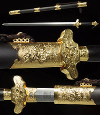 Peony Gold Plated Jian Damascus Steel Blade Kung Fu Chinese Martial Arts Tai Chi Sword Features: