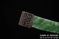 Qing Dynasty Dao Chinese Sword Clay Tempered & Folded Steel Hazuya Polished Blade Genuine Rayskin Scabbard Features: