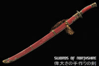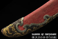 Red Dragon Chinese Sword Clay Tempered & Folded Steel Blade Full Rayskin Wrap Dao