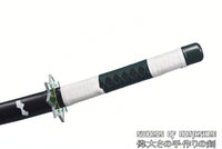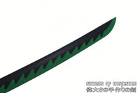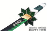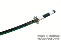 The Sanemi Shinazugawa sword is a legendary Nichirin blade from the Demon Slayer series. As the current Wind Hashira, Sanemi Shinazugawa’s power can’t be understated. His personality is much like the wind that he embodies, as he’s known to be unpredictable and temperamental. This is shown doubly so when talking to his younger brother Genya, who tends to take the spotlight with his unique ability to consume demons. This Sanemi katana comes with a beautiful shuriken-esque tsuba to keep it fully protected and ready for anything. The blade of this amazing Wind Hashira sword is also attached to a solid tsuka that is wrapped uniquely with two different ito styles. As with every other Wind Hashira sword, the words “Destroyer of Demons” in Kanji are engraved on the blade of this Sanemi Shinazugawa sword. Looking for the best Sanemi katana to buy online right now? Look no further than right here at Swords of Northshire and purchase your very own Sanemi Shinazugawa sword today!