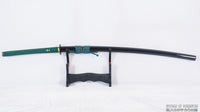 This Nodachi sword is inspired by Sasaki Kojiro's famous Monohoshi Zao Sword, translated in English as 'The Drying Pole' or the 'Clothes Rod'. It earned this name because it was so long that it resembled the bamboo clothes rods that were used at the time for drying clothes. The length is accurate to Kojiro's personal sword, forged with 1095 high carbon steel, clay tempered & folded with a polished mirror-like surface. The blade is repeatedly heat treated and hand forged to remove impurities, which gives it strength and flexibility. The blade is full tang with hand engraved Mei (Signature). It is fully functional and battle ready. The sword comes with silk sageo/ito, genuine same' (rayskin), premium copper and iron fittings, and black lacquered hardwood saya. This sword is a very good choice for dojo and iaido use, gifts, cutting practice, display, and collection. It is durable enough for tameshigiri, bamboo, bones, iron wire, etc.