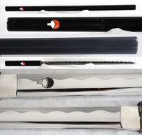 This shirasaya chokuto offers great quality at a reasonable price, made to look just like Sasuke Uchiha's Sword of Kusanagi from Naruto. Featuring our hand forged and polished 1060 carbon steel blade, designed for optimal balance and handling. This sword is a more traditional alternative to the many zinc aluminum alloy blades available. Our steel blades have been designed from the ground up, to offer perfect balance for regular Iaido & Kenjutsu use. The sword comes with a black lacquered and ridged hardwood saya/handle. Each sword is individually handmade so specifications may vary slightly.