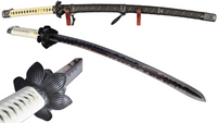 This replica features a full set of unique Mortal Blade fittings, a customized hardwood saya, and white leather handle wrapping with genuine rayskin underneath. Forged from 9260 spring steel, this blade has increased flex and can return to its original tempered state when flexed. Being forged from spring steel, this is a perfect blade for beginner swordsmen and seasoned experts alike. This Sekiro blade is perfect for regular use, display, or cosplay.