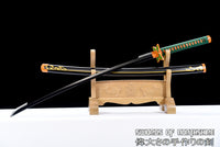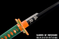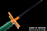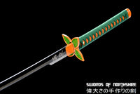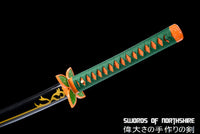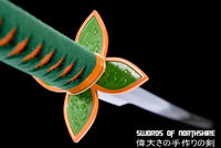 Unique even by Demon Slayer standards, this Shinobu Kocho sword is one of the most recognizable Nichirin blades. Due to her fighting style with the Shinobu katana, which utilizes thrusts and piercing attacks with the tip of her blade covered in poison, the shape of this Shinobu Kocho sword proves effective in delivering these blows. Her combined medicinal knowledge and Insect Breathing style allow her to combat the strongest of demons in a way that is unlike any other Demon Slayers. This blade of our Shinobu Kocho sword is made of 1095 High Carbon Steel, and offers a black blade through-out. Our Shinobu katana also comes with a plant-like tsuba to match the entire aesthetic and design of the art. Looking to buy Shinobu's sword for yourself? Add ours to your cart right here today! With Swords of Northshire, you will not be dissapointed with your Shinobu sword.
