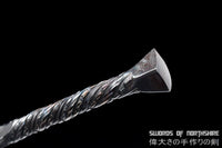 This functional yari spear is made from one solid piece of folded 1060 high carbon steel. The yari was one of the earliest weapons used by Japanese warriors. In early Japanese history the yari was a common weapon on the battlefield, even used more often than the samurai sword until the Edo period when close quarters combat became more prevalent. Infantry units would advance in a tight formation with spears in hand and raise a wall of blades to stop the advance of enemy infantry while keeping a safe distance. Yari techniques focus on thrusting and stabbing, but combine slashing and striking in some situations. This is a heavy spear that can be used with two hands. Please note, our spears are handmade so specifications vary slightly from blade to blade.
