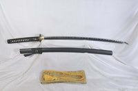 This Martial Arts Katana offers great quality at a reasonable price. Featuring our hand forged and polished 1060 carbon steel blade, designed for optimal balance and handling. This sword is a more traditional alternative to the many zinc aluminum alloy blades available. Our steel blades have been designed from the ground up, to offer perfect balance for regular Iaido & Kenjutsu use. The blade is hand sharpened with niku (for durability). The sword comes equipped with a black matte hardwood saya, silk sageo/ito, alloy fittings, genuine same' (rayskin) and silk wrapped tsuka (handle). The Katana is well assembled and the ito wrapping is tight and even. Each sword is individually handmade so specifications may vary slightly.