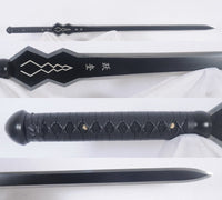 This is a well-made folded steel sword, inspired by Konno Yuuki's Thrust Sword from Sword Art Online, with a modern meets traditional design. The sword was commissioned by a good friend as a gift for his wife, and now we are making it available to everyone. The blade is sharp and folded 13 times resulting in over 8,000 layers. It has a full tang, secured into the handle with two bamboo mekugi. It is a good choice as a gift for Sword Art Online fans or display at home. It is also durable enough for cutting tameshigiri. Each sword is individually handmade so specifications vary slightly from sword to sword.