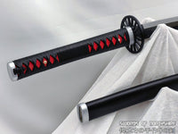 Tanjiro Kamado stands as one of the most powerful Demon Slayers in history, and our design for his Nichirin Blade is fit for such a legend. The tsuka consists of a black ito with red rayskin underneath, showcasing Tanjiro's underlying hatred for demons over his calm demeanor. The black hardwood saya is simple yet effective in design, and perfectly matches the sleek black blade inside.