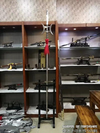 The Chinese Spear (Qiang) is used in many variations on the pre-modern Chinese battlefield. It is one of the four major weapons, called in this group "The King of Weapons". Many generals preferred the use of the spear because it's techniques and applications were superior to those of other weapons. Because the spear was normally light given it's great length it could be wielded with quickness and agility. This spear is a beautiful, fully functional replica of an ancient military weapon used only by elite Chinese troops.