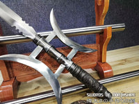 Three Kingdoms Chinese Double Halberd Spear Hand Forged Folded Steel Elite Military Weapon Features: