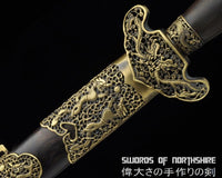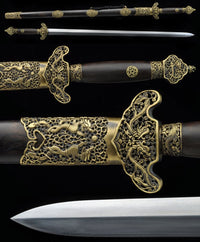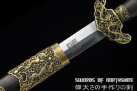 Twin Dragon Jian Damascus Steel Blade Kung Fu Chinese Martial Arts Wushu Tai Chi Sword Features: